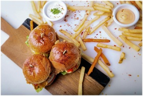 Delicious gourmet burgers with a side of french fr