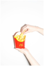 Close-up of hands holding McDonald's fries in whit