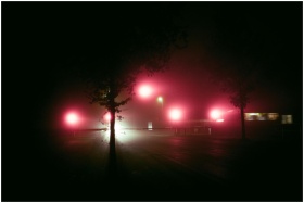 Nighttime street view in Berlin highlighted by bright, glowing traffic lights.