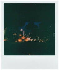 A captivating instant film photograph of blurred street lights at night.