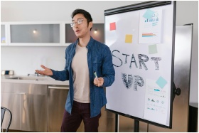 Asian businessman presenting a startup idea with c