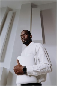 Professional African American man holding a laptop