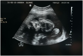 Ultrasound scan showing the image of an unborn child in the womb, highlighting pregnancy and healthcare.
