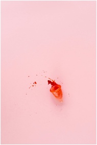 Menstrual cup with spilled blood on a pink background, emphasizing menstrual health awareness.