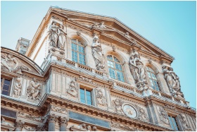 Detailed view of the historic Louvre Museum facade
