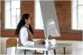 An African American professor teaching a lesson in