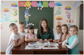 A group of children with their teacher in a vividl