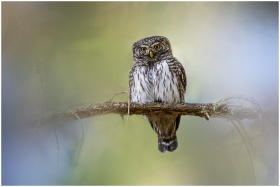 Close-up of an Eurasian Pygmy Owl perched on a bra