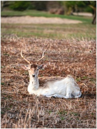 A Young Fallow Deer Resting in an Autumn Field in Amsterdam, NL.