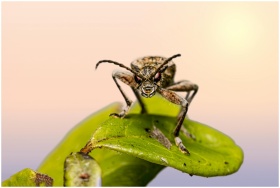 Close-up of a Black-Spotted Longhorn Beetle (Rhagi