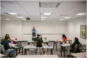 University classroom with students receiving instr