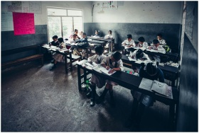 Students engaged in focused learning inside a prim