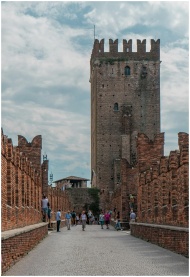 View of Ponte Scaligero with tourists in Verona, I