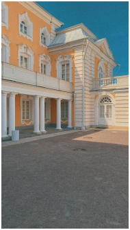 Yellow neoclassical building with columns on a sun