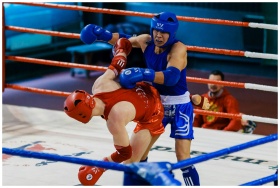 Two martial artists compete fiercely in a boxing r