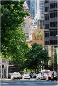 Busy urban street in Sydney featuring cars and lus