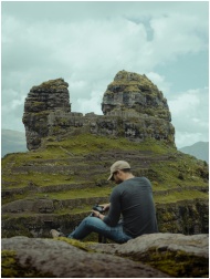 A man sitting in nature at a rock formation in Cus