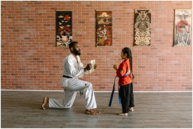 Martial arts instructor training a young student i