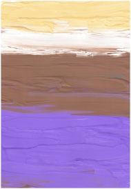 Vibrant layered abstract painting showcasing earth tones and purple hues.