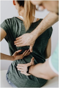 Chiropractor performs manual adjustment on a patient's back to alleviate discomfort and improve posture.