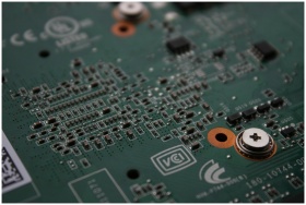 Detailed view of an electronic circuit board showc