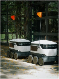 Two autonomous delivery robots positioned outside