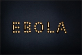 Medicinal pills arranged to spell 'EBOLA', symboli