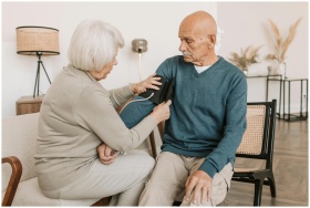 Elderly couple involved in a home blood pressure c