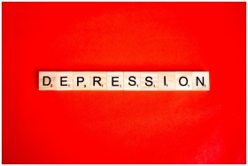 Word depression spelled with letter tiles on vibra