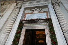 Stunning entrance of St. Peter's Basilica adorned with flowers, showcasing classical architecture.