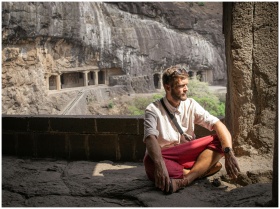 A man sitting in meditation at the historic Ellora