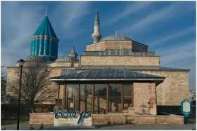 Stunning view of Mevlana Museum in Konya, with its iconic turquoise dome.