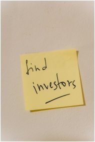 Close-up of a handwritten note reminding to find investors, on a wall.