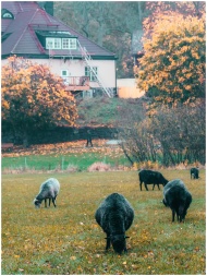Peaceful sheep grazing in a lush autumn field in Grinda, Stockholm.
