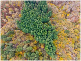 Captivating aerial view of a colorful autumn fores