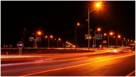 Long exposure of car lights on an urban street at