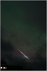 Captured meteor streak through a starry night sky in Norway, offering a breathtaking cosmic view.