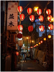A vibrant night scene of a Tokyo alleyway illumina