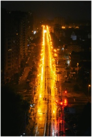 Vivid night scene of an urban street in Kyiv, show