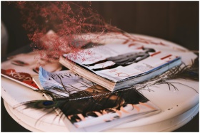 Stylish arrangement of fashion magazines on a tabl