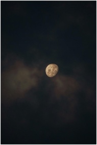 Captured mid-phase moon surrounded by ethereal clouds in Jakarta, Indonesia.