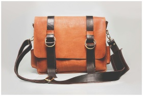 Elegant brown leather briefcase with dark straps a