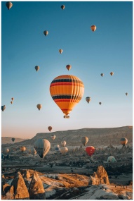 Hot air balloons floating over Cappadocia's unique