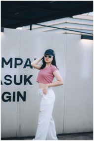 Fashionable woman wearing a crop top and sunglasses posing outdoors in Cimahi, Indonesia.