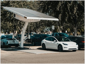 Electric car parked at a solar charging station ou