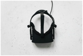 Top-down view of a VR headset on a white textured