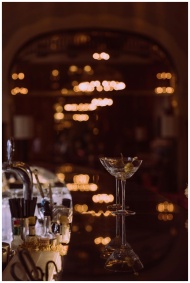 Elegant cocktail glasses on a luxurious bar counte