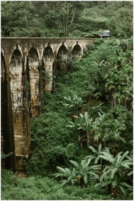 Stunning view of the iconic Nine Arches Bridge surrounded by vibrant jungle in Sri Lanka.