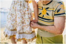 A loving moment between a grandmother and child holding hands on a sunny day.