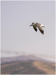 Close-up of an Audouin's Gull (Ichthyaetus audouinii) flying over Pertek, Tunceli, Türkiye.